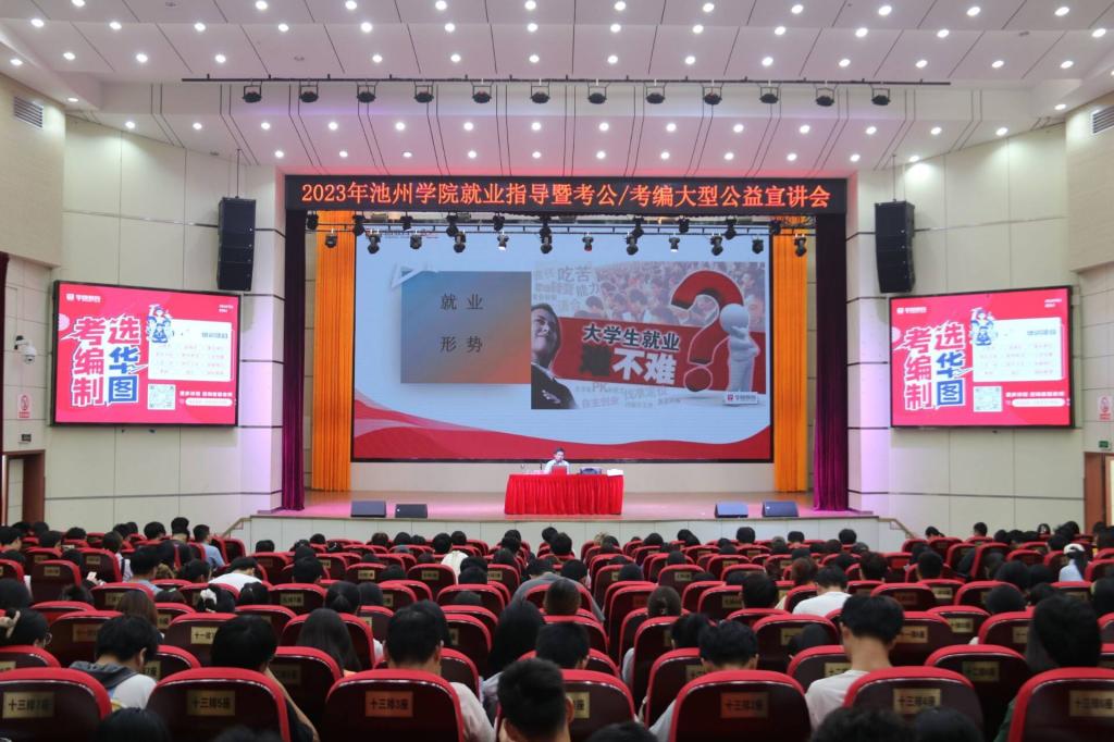 9月27日下午,学校在博古楼礼堂组织开展2023年就业指导暨考公考编大型公益宣讲会。本次讲座由安徽华图教育集团公务员考试培训专职教师汪周武担任主讲,各二级学院师生代表400余人参加讲座。