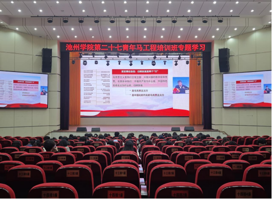 3月24日晚,学校第二十七期青马工程培训班集中学习活动于博古礼堂顺利开展,校青马班全体学员、班级团支部书记集中在线学习了由中国社会科学院马克思主义研究院习近平新时代中国特色社会主义思想研究部主任、研究员陈志刚主讲的《<习近平新时代中国特色社会主义思想专题摘编>学习辅导》。